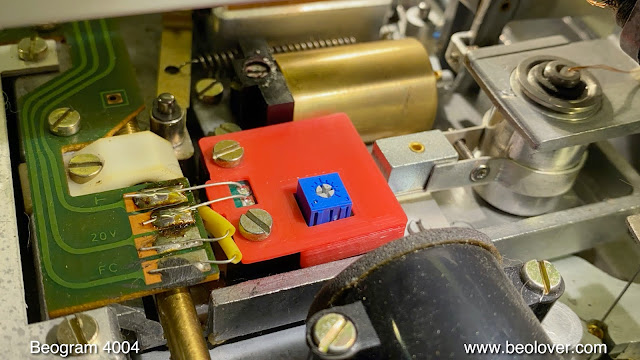 I usually replace all the electrolytic capacitors and some more parts that have a tendency to be at the end of their service life at this point in time. An important set of components that should be replaced are the RPM adjustment trimmers and the RPM relay. This shows the modern replacements implemented: An encapsulated SMD relay replaces the often corroded original Siemens or National relay, and the original single turn trimmers were replaced with modern 25 turn precision trimmers. This allows a much better adjustment of the RPM.