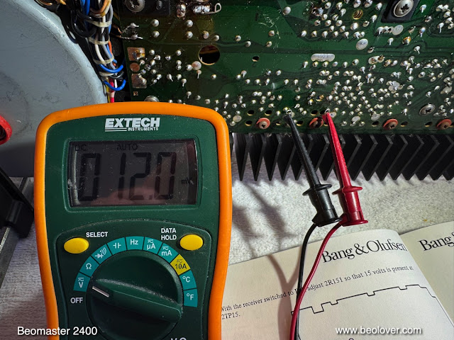 Next I installed the remaining parts. And then it was time to adjust the new bias trimmer of the sensor arm transistor to get 4V at the collector of the transistor: